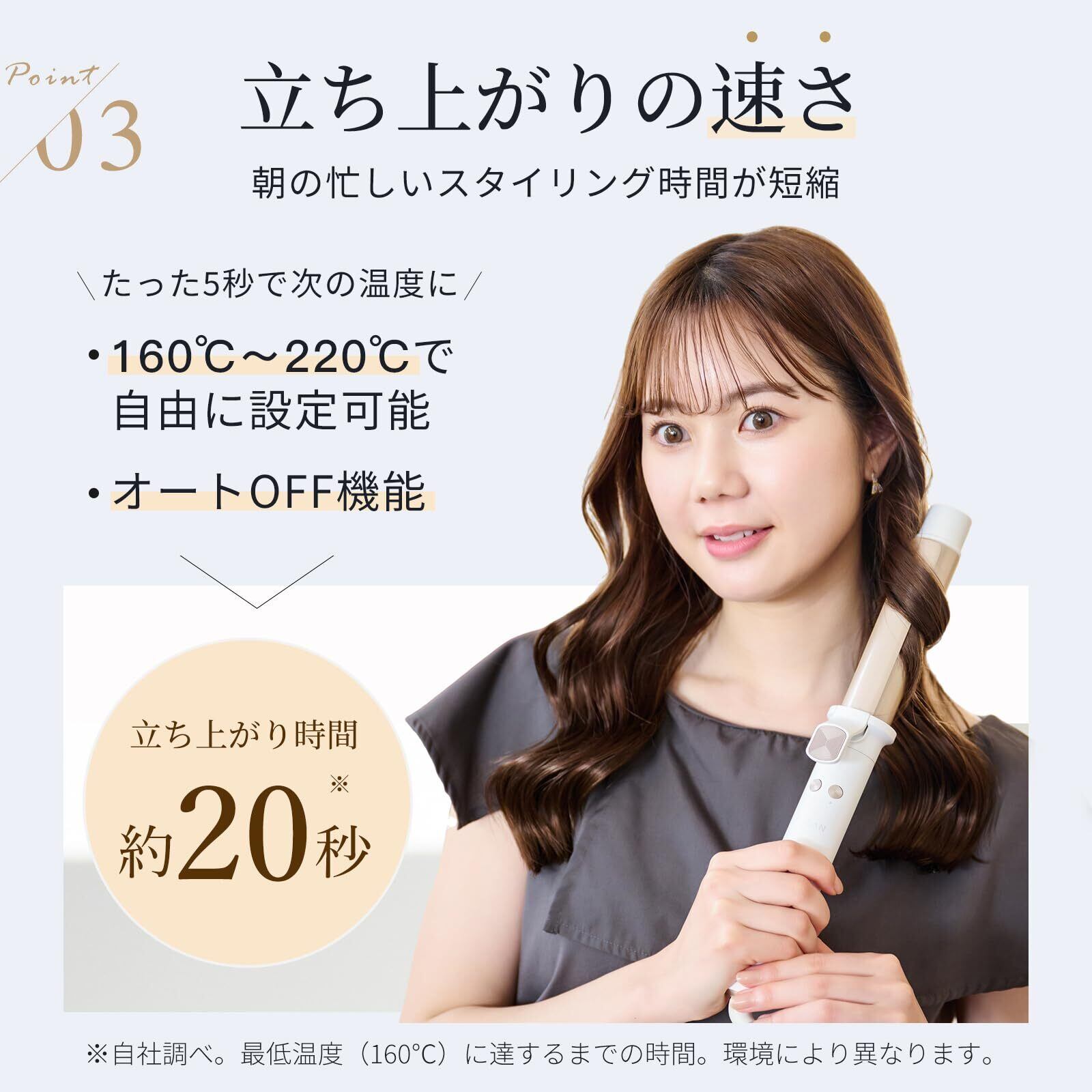 【32mm】ANLANオートコテは人気のサイズと立ち上がり時間20秒での速さ、美しいカールを簡単に作り出します。32mmのカールアイロンは、何本も持ちたくない人や複雑なデザインをしない人に最適です。1本あればどの髪の長さにも対応できるので、万能なサイズと言えます。