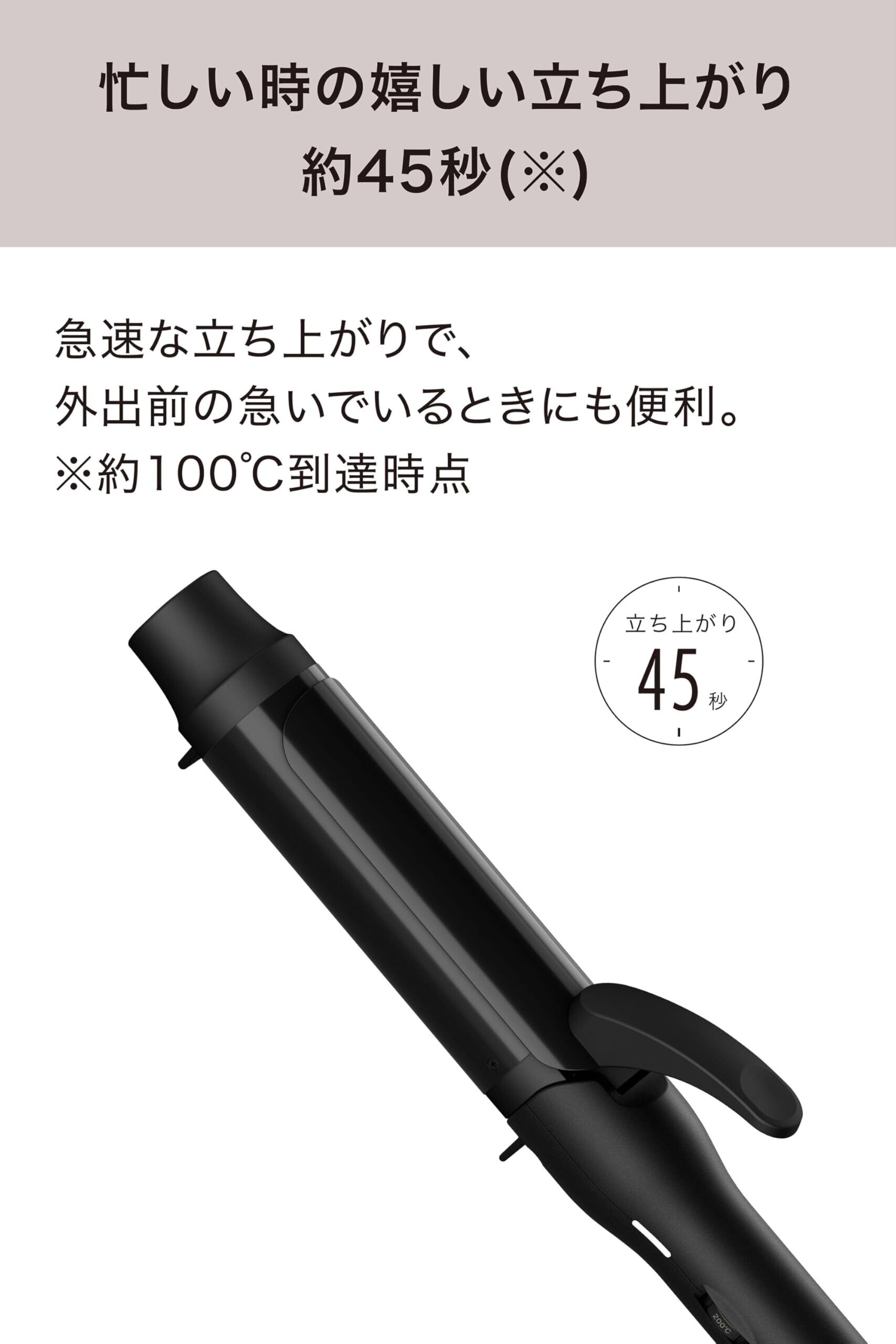 【便利な急速立ち上げ&自動電源OFF】いそがしい外出前に嬉しい、素早い立ち上がりが魅力のヘアアイロンです。約45秒でコテの温度が約100℃に到達します。モッズヘアのヘアアイロンは自動電源OFF機能を搭載しているので、電源を消し忘れる心配がありません。