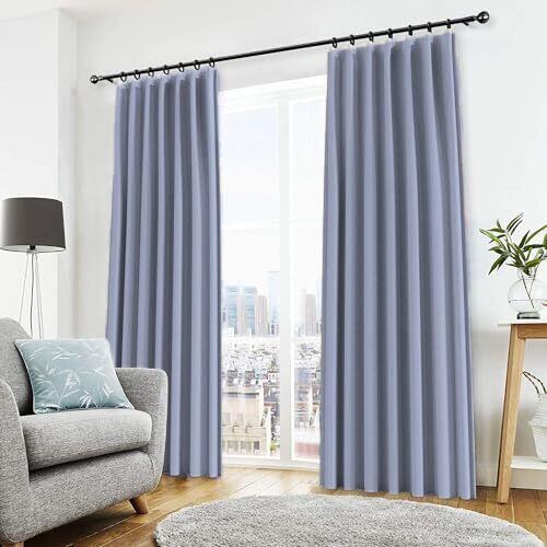 PANDA INTERIOR カーテン2枚セット 防音カーテン 遮光カーテン 断熱カーテン 既成 カーテン省エネ, 厚地, スタイリッシュ, 幅100cm, 調節可能フック付き, 洗濯可, 寝室用 (ライトブルー, 幅100cm×丈110cm-2枚) | Lulu