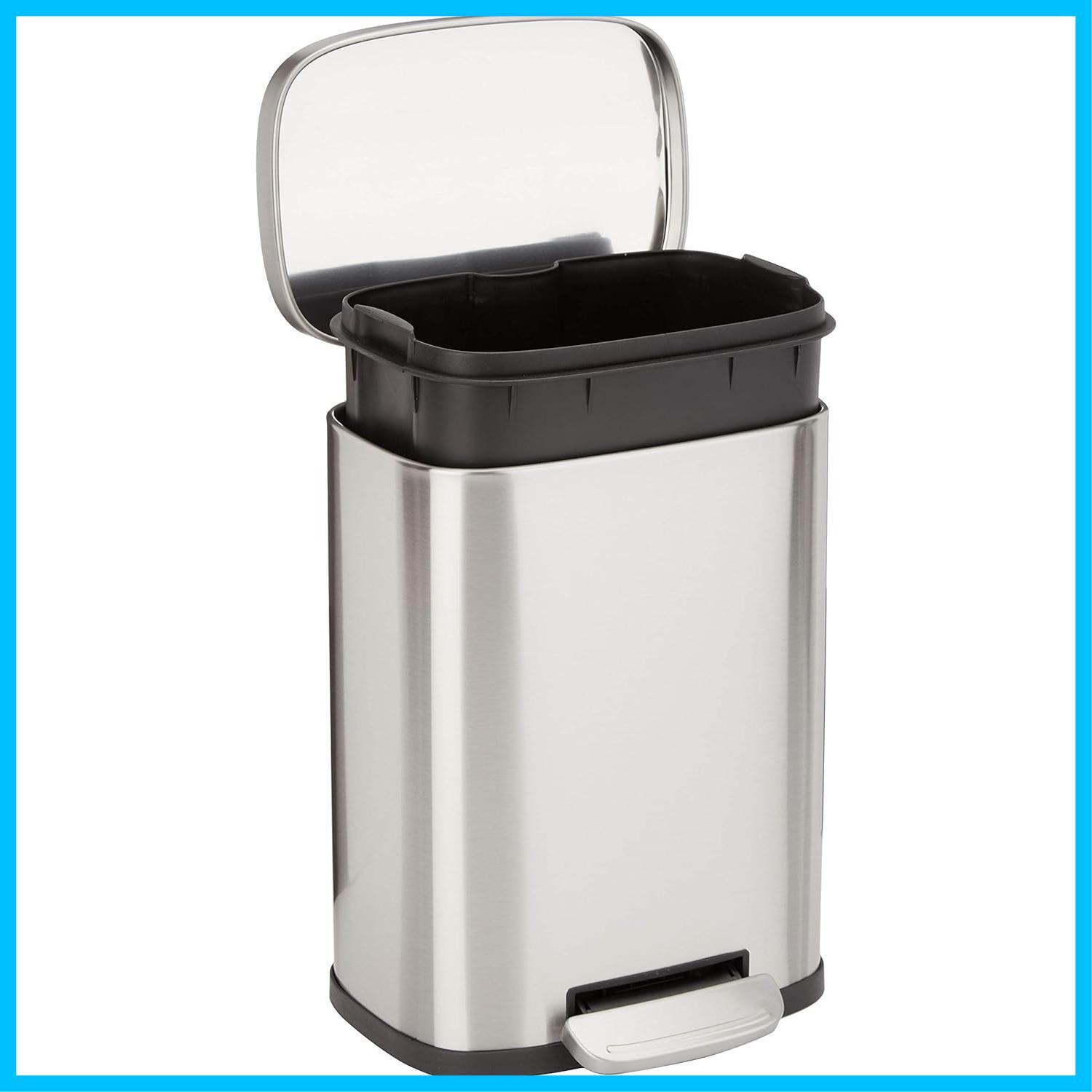 ベーシック ゴミ箱 5l(5リットル) ソフトクローズ 静音 ふた付き ペダル付き スチール製 ステンレススチール おしゃれ 長方形 シルバー