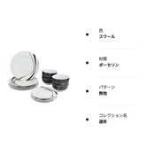 27cmのディナープレート、19cmのサラダ/デザートプレート、14cmのボウル各6枚入り
