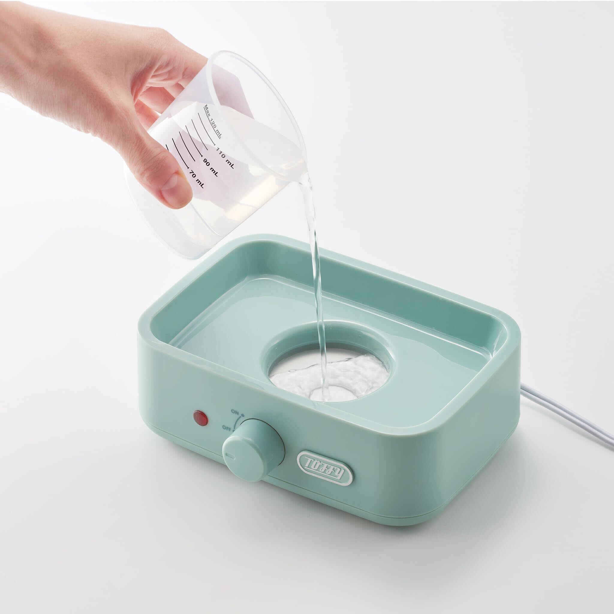 ●カンタン操作!放っておくだけ!①付属の軽量カップで本体に水を入れる②軽量カップ底のピンでたまごに穴を開ける③たまごをエッグスタンドに並べてスイッチを回す完成