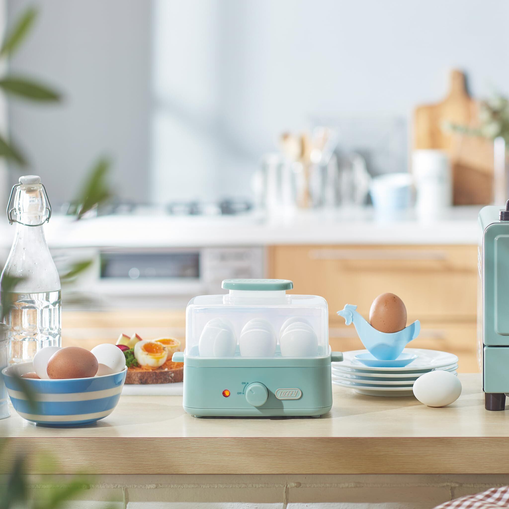 【Toffy/トフィー】 エッグスチーマー K-FS2 ゆでたまご コンパクト カンタン ゆで具合調整可能 半熟 固ゆで 最大6個まで お弁当 レトロ かわいい K-FS2 (ペールアクア) | Lulu
