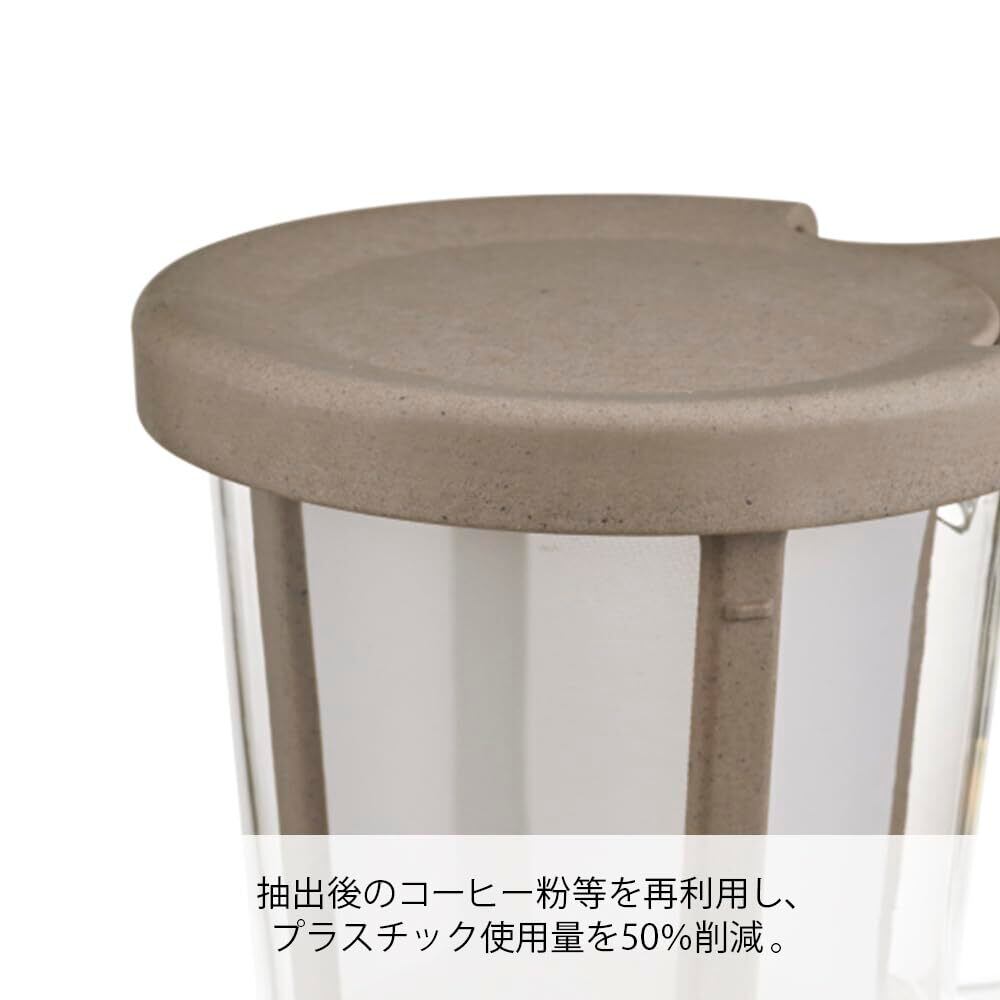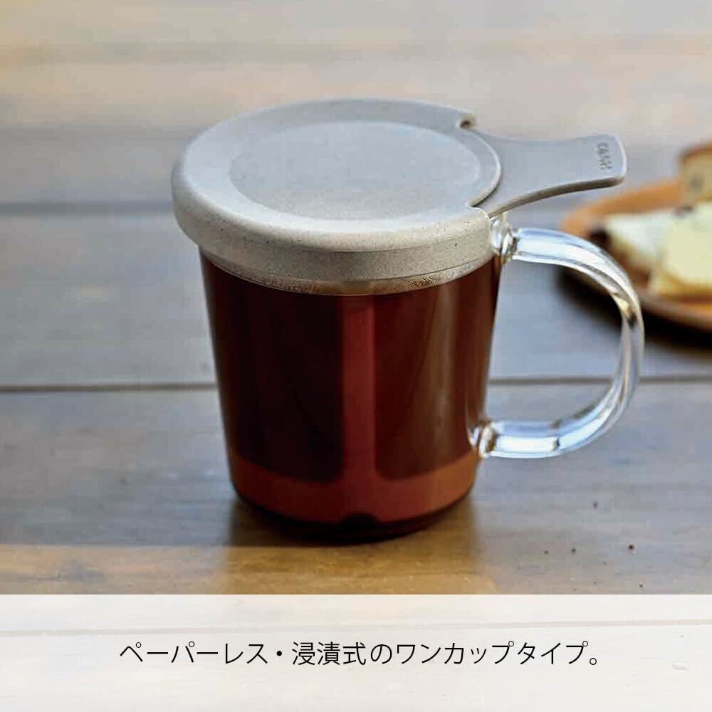 【商品詳細】 本体サイズ:幅11.8×奥9.3×高9.3cm、実用容量170mL、本体材質:本体/耐熱ガラス、フタ・ストレーナー/ポリプロピレン・コーヒーカス・天然系無機物、メッシュ/ポリエステル、日本製