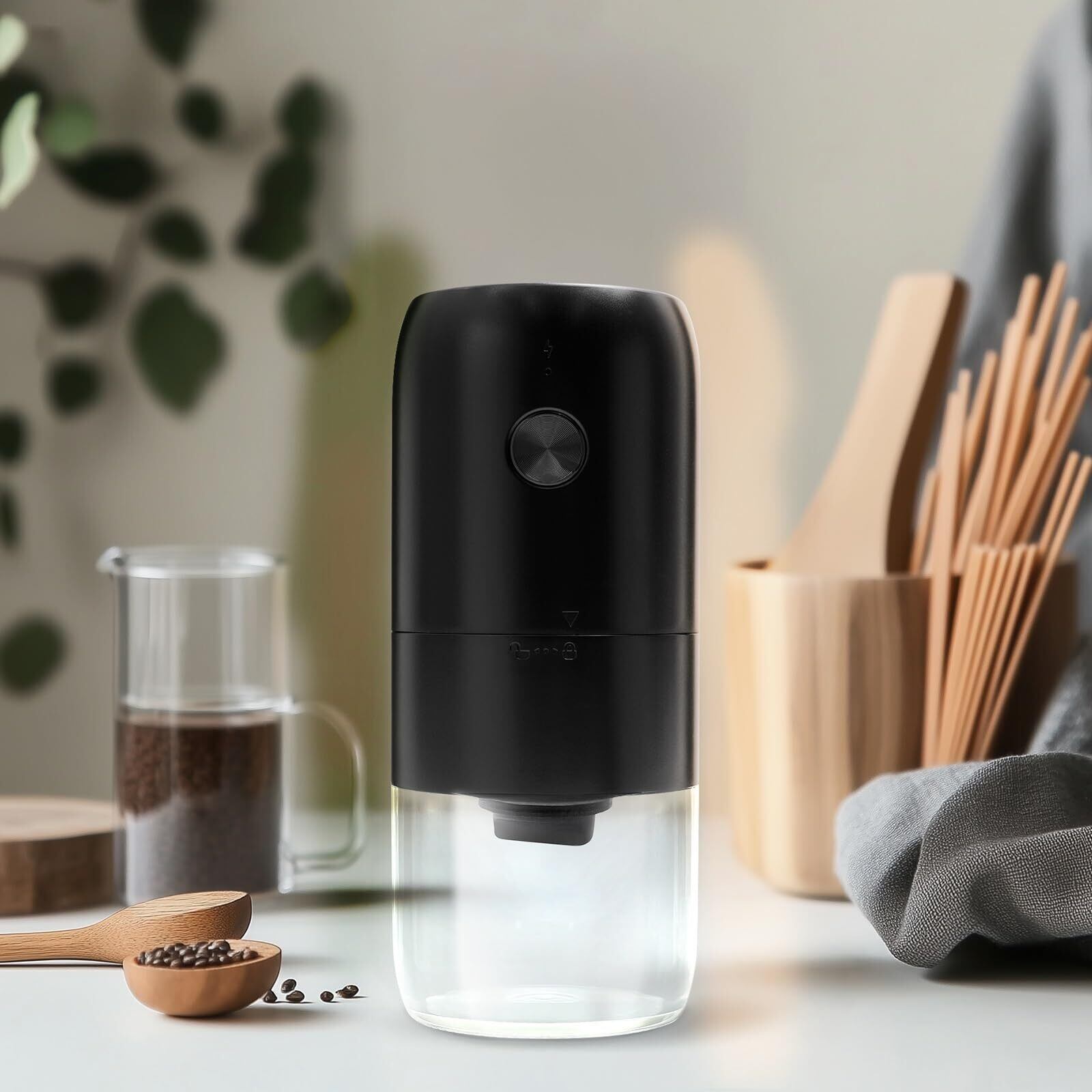 コーヒーミル 電動 USB充電式 臼式 セラミック製の刃 無段階の粒度設定 コーヒーグラインダー バッテリー内蔵 1800mAh ミルミキサー 粒度調整可能 自動停止 掃除ブラシ付 お手入れ簡単 小型 洗い可能 (ホワイト)