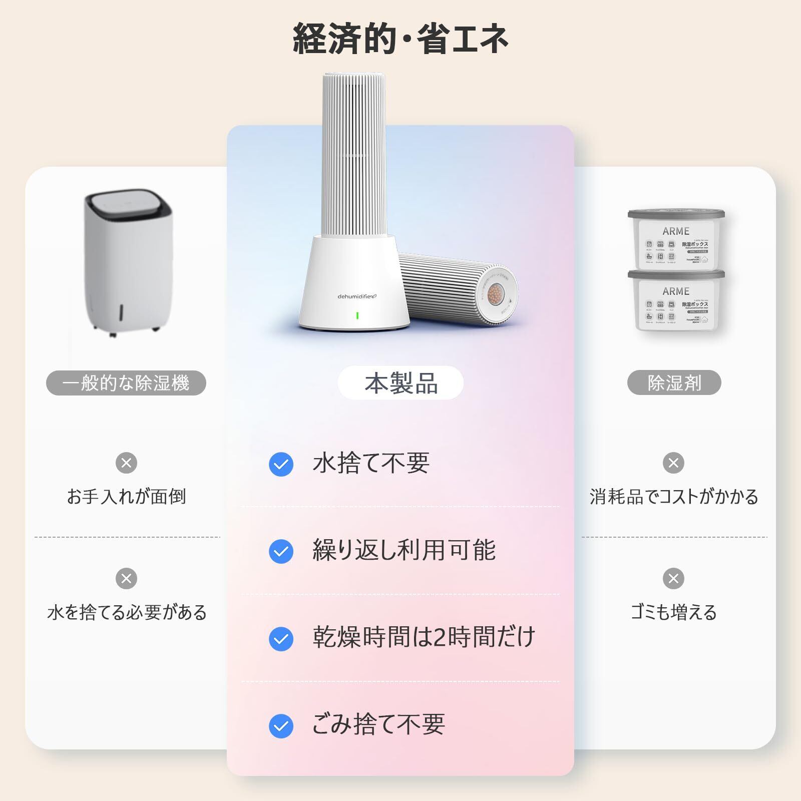【強力除湿・狭小空間向け】シリカゲル粒子は数千万もの極小な空孔で満たされ、水分子をしっかりと捕らえます。円筒形状の除湿ストリップは、360度全方向から水分を除去し、梅雨の季節の湿気から解放します。コードレスでコンパクトなので、衣類クローゼットや靴箱などの狭い場所、または洗面台の下や収納棚などのコンセントのない場所での除湿が可能です。適用シーン:食品保管庫/本棚/靴箱/カメラケース/バスアイテムの棚/衣類の引き出し