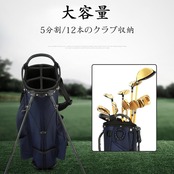 【大容量】ゴルフバッグは5分割で、クラブの衝撃を軽減するために厚い素材を使用し、最大12本のクラブを簡単に収納することができます。 ゴルフグローブやキャップ、ボールなどの小物を収納できるポケットを複数装備しています。