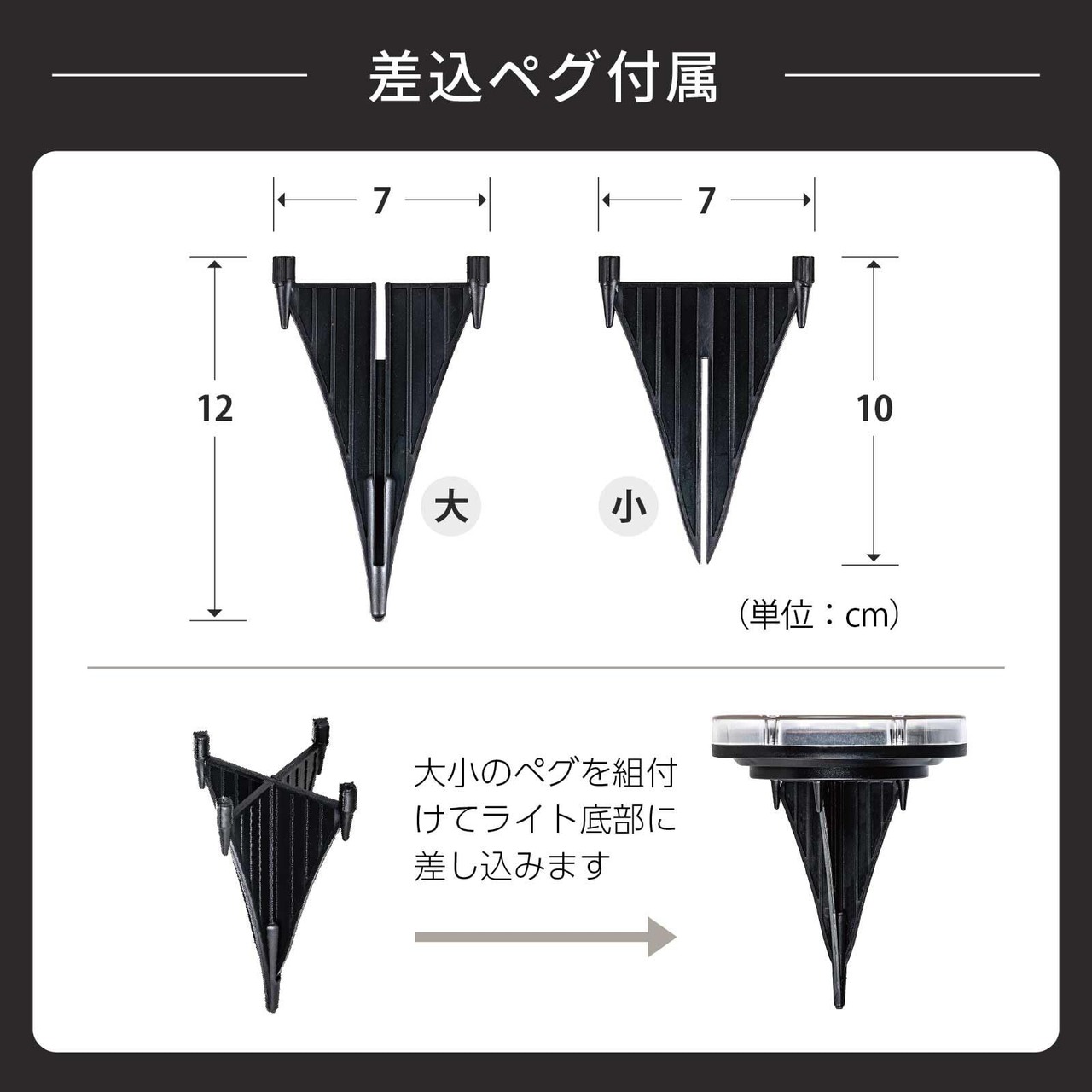 【簡単、置くだけ設置】 日中は太陽光発電(直射日光で充電)されるため、電源不要でECOなライト。ソーラー部分にセンサーが内蔵されており、夜間は自動でON状態に。 (1日を通して日当たりの良い場所に設置してください) 配線が無く見た目がスッキリ ※付属のペグで土に差して固定も可