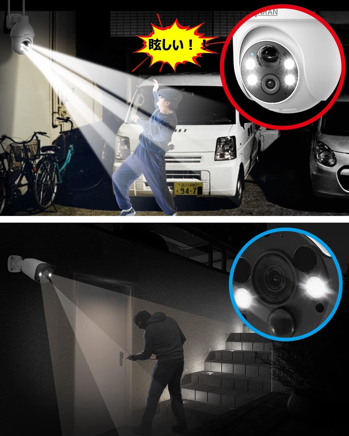 【Alexa対応・家族共有・双方向通話】ネットワークカメラには、内蔵マイクを搭載し、映像だけではなく音声も確認することができます。高輝度LED 4個を搭載し、人体検知が触発されると、防犯カメラは発光とともに警報を鳴らして侵入者を怖がらせます。また、マイクを通じて現場にAndriodやiphone携帯アプリ経由カメラ側と通話可能となります。カメラ管理者として他の人に閲覧/操作のことを許可することができ、家族や友達が同時にリアルタイムで録画を視聴可能。出張でも外出でも郵便者等通話でき、家族と一緒に高齢者の介護と子どもの安全を見守ります。