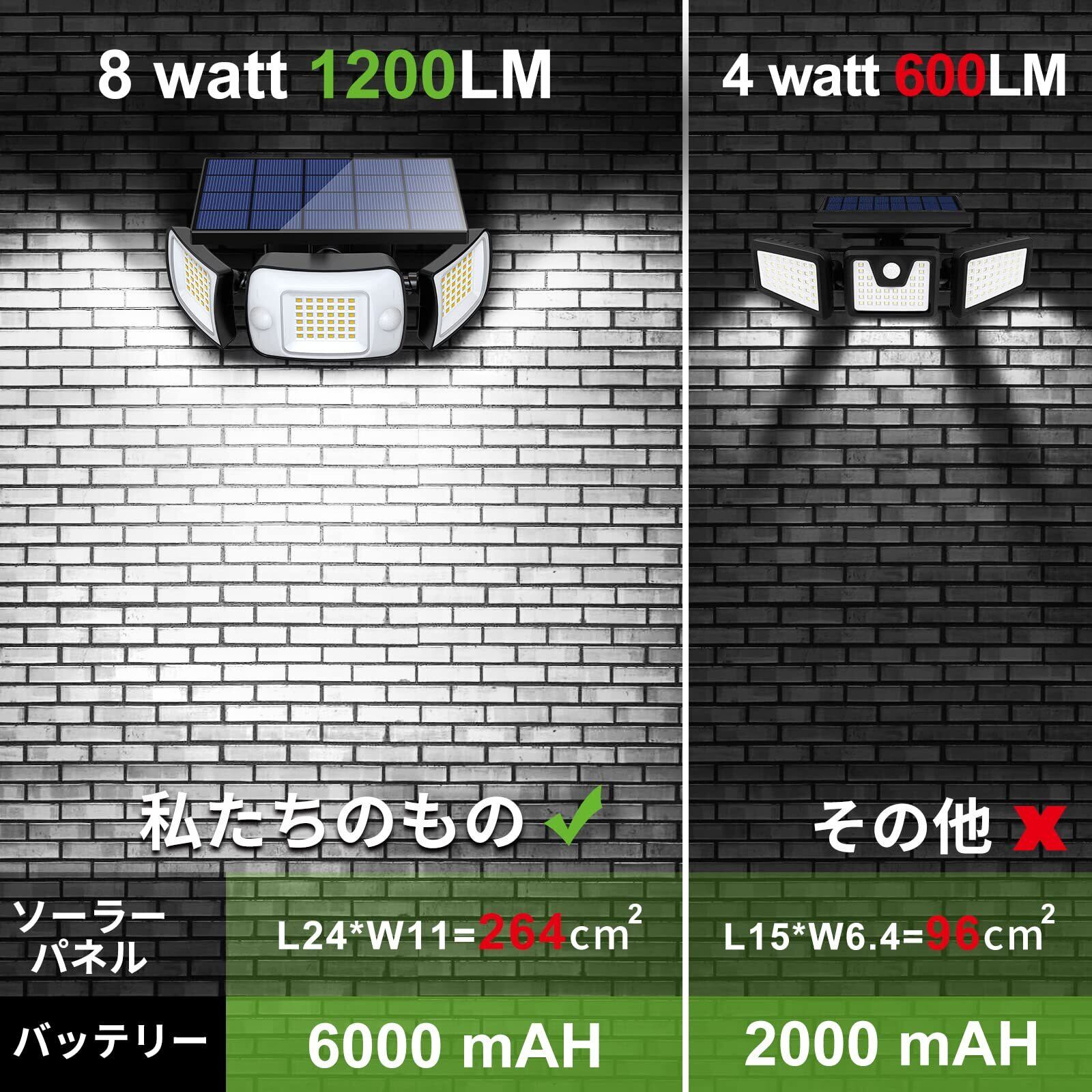 Intelamp ソーラーライト 屋外 センサーライト屋外 防水 ソーラー 人感センサー LEDライト6000mAh大容量電池 1200ルーメン 電気代0【分離型 自動点灯/消灯 3面発光 3つ知能モード 太陽光発電 IP65防水】 防災対策 ガーデンライト 屋外ウォールライト 壁掛け/庭先/表玄関/駐車場/停電時適用 防犯ライト ソーラーセンサーライト