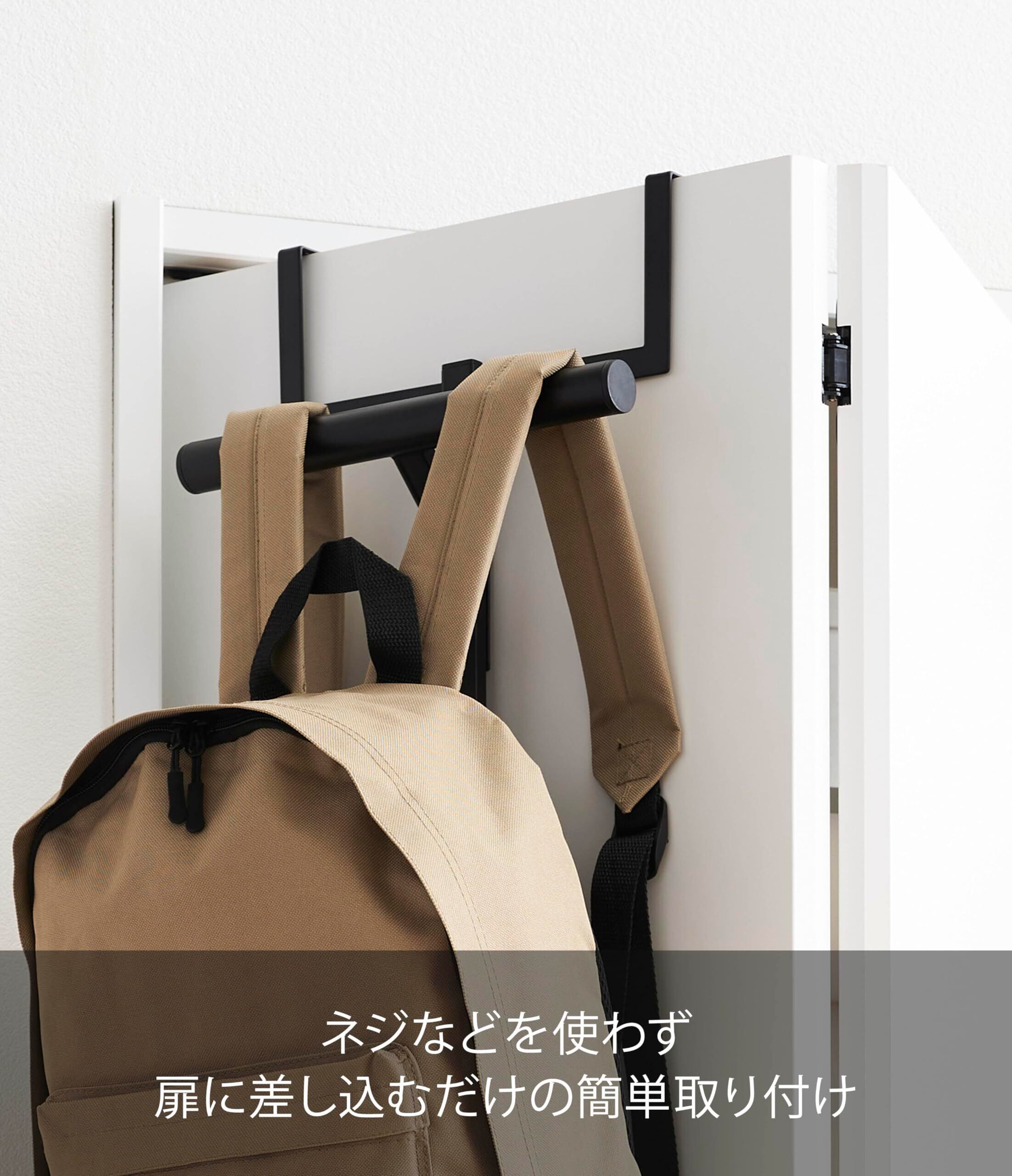 山崎実業(Yamazaki) ランドセル & リュックハンガー 2段 ブラック 約W26.5×D11.5×H92.5cm タワー tower 扉に差し込むだけ 簡単設置 5243