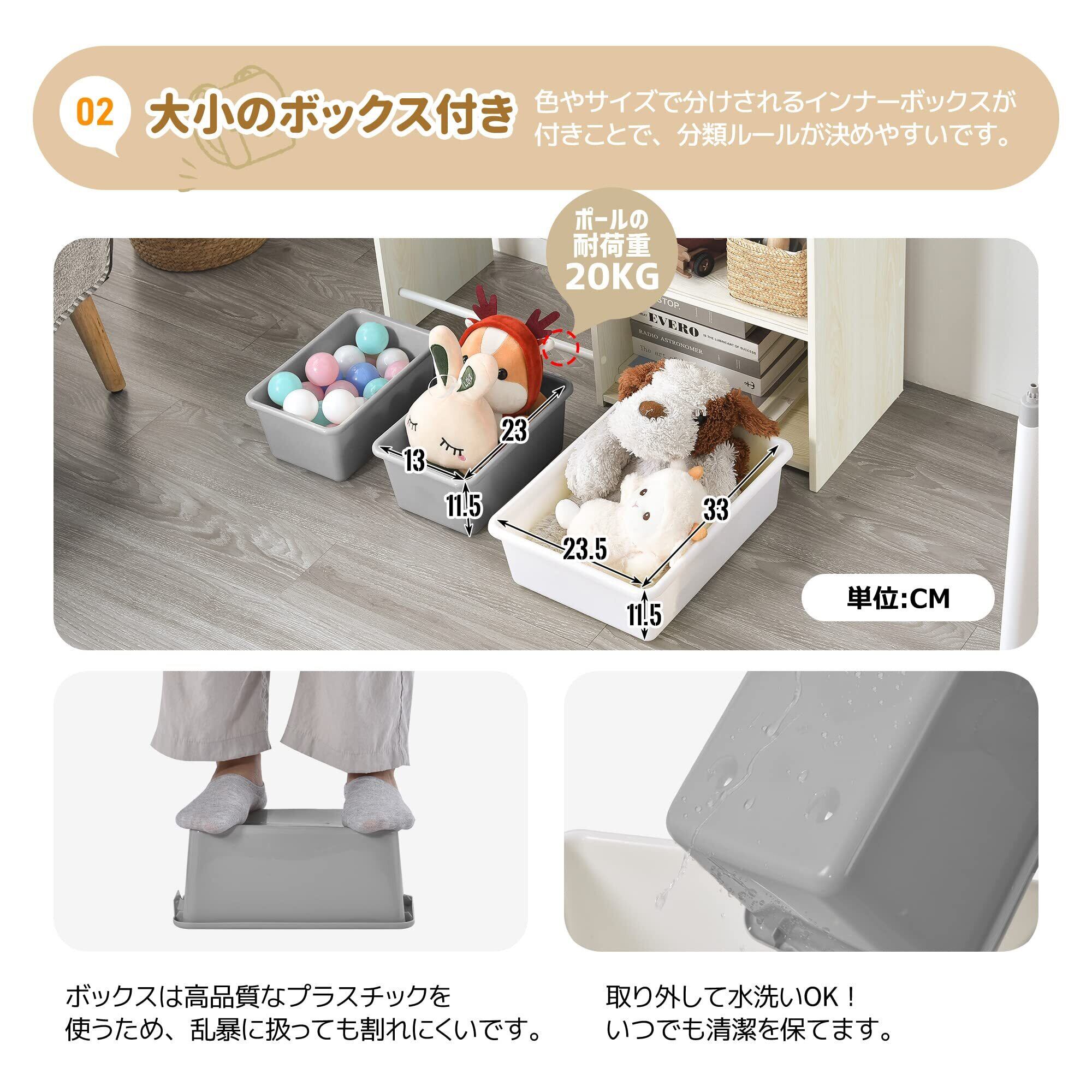 【お片付けが身に付く知育家具】おもちゃを入れるだけでお片付け完了。絵本も立ててしまえてスッキリ。 【自分で考えて工夫しながらお片付け】「色で分ける?」、「種類で分ける?」。使いやすいように工夫しながら楽しく収納。 【バスケットごと移動OK】リビングから子供部屋へ。おもちゃを入れたバスケットごと移動できる。 【らくらく整理整頓】細々としたおもちゃもこんなにスッキリ。どんどん入れるだけでお部屋が片付く。 【ご注意・付属品】简単な組み立て品 日本語の組立マニュアル付属