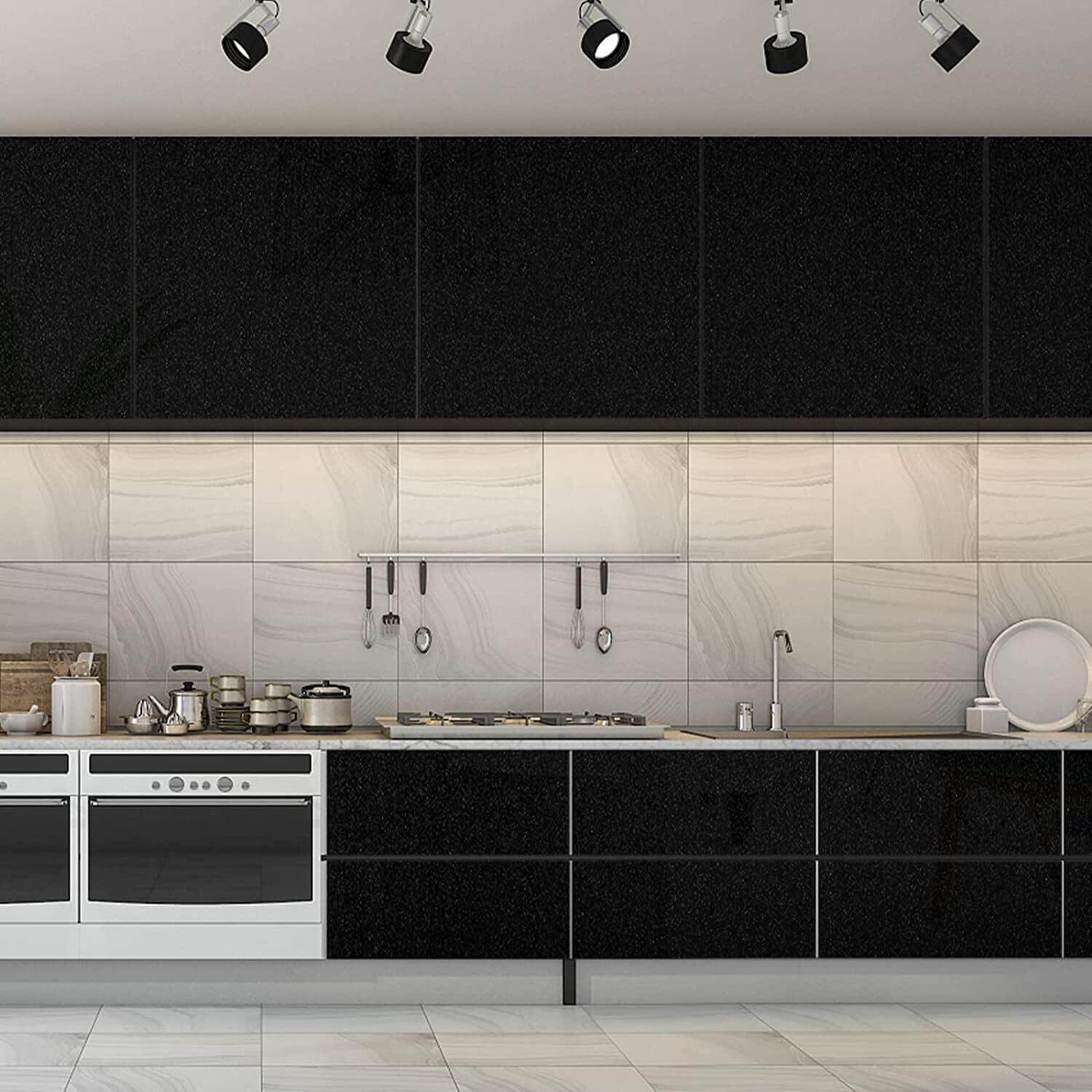 Cosnight 壁紙シール 黒 グロッシー 40cmX3m はがせる壁紙 リメイクシート ブラック 防水 耐熱 壁紙 のり付き、剥がせる壁紙 装飾キッチン、キャビネット、テーブル、壁紙の上から張る壁紙 家具のDIY 賃貸 | Lulu