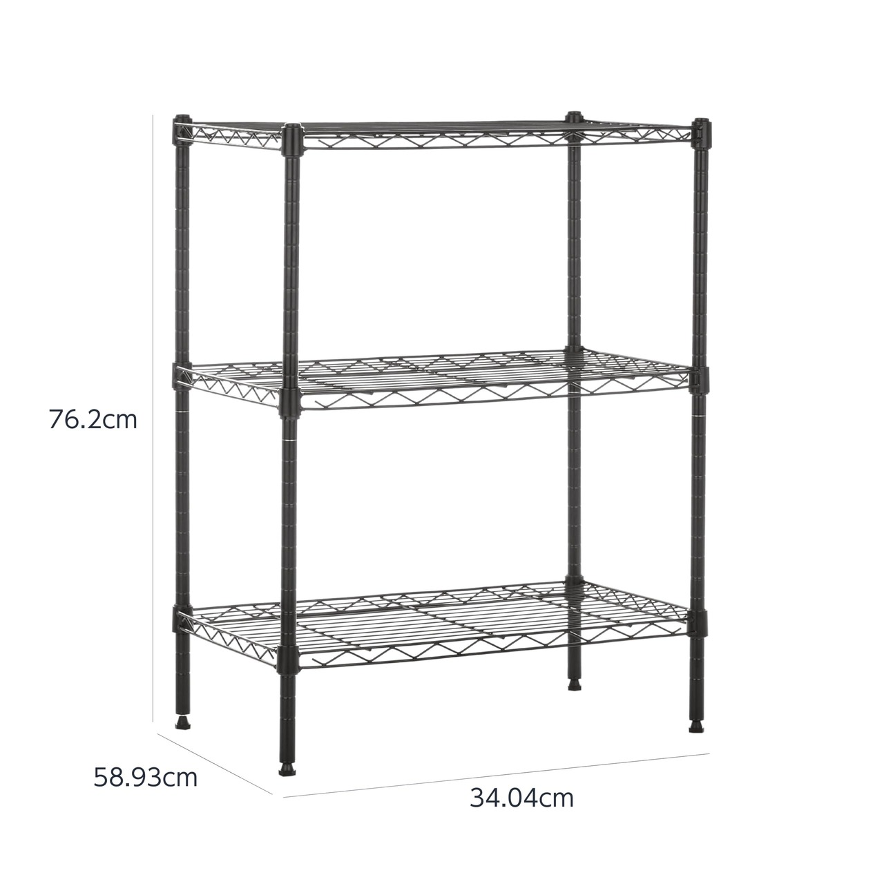 ベーシック 3段スチールラック 棚 メタルラック 耐荷重340kg 幅58.9×奥行34×高さ76.2cm ブラック