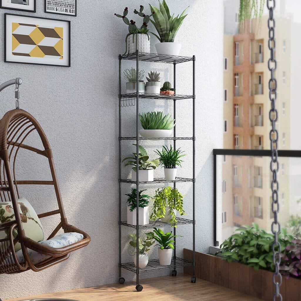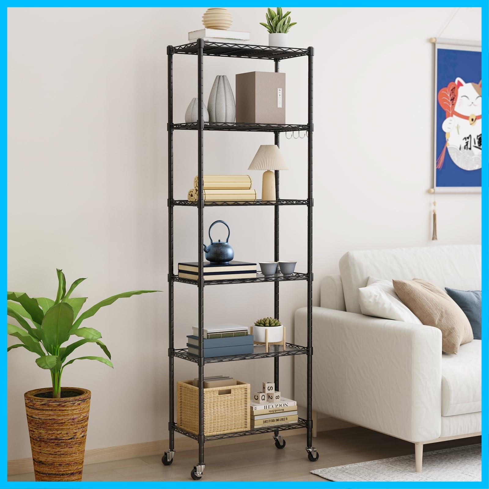 NATRKE メタルラック 6段 ブラック キャスター付き スチールラック スチールシェルフ ワイヤーラック 置物架 大容量 防錆 傷つきにくい おしゃれ 省スペース棚 耐荷重240kg | Lulu