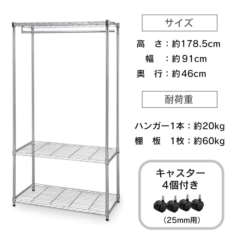 アイリスオーヤマ メタルラック本体 ワードローブ 3段 キャスター付 ポール径25mm 幅91×奥行46×高さ178.5cm メタルシェルフ メタルシェルフ クロムメッキ SEW-913E | Lulu