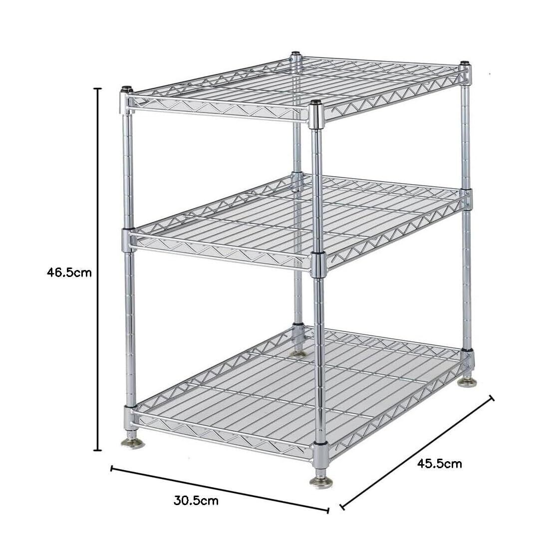 ドウシシャ ルミナス スーパーライト 3段 調味料ラック スパイスラック シンク下収納 幅45.5×奥行30.5×高さ46.5cm 可変棚 ミニラック 棚耐荷重30kg 防錆加工 サビに強い 水回りOK キッチンラック ポール径12.7mm WH3045-3 | Lulu