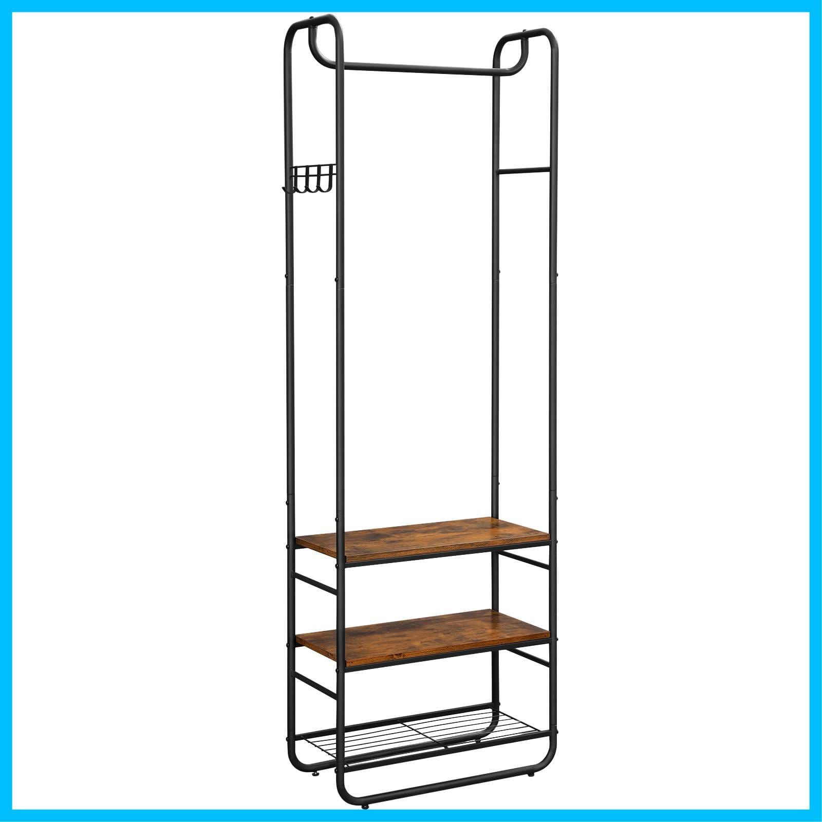 VASAGLE ハンガーラック 木製 スリム 頑丈 シューズラック コートハンガー おしゃれ 省スペース 組み立て簡単全体耐荷重41KG 組立簡単 幅58×奥行28×高さ181cm 玄関 コート掛け 型番HSR81BX/NHSR81BX | Lulu