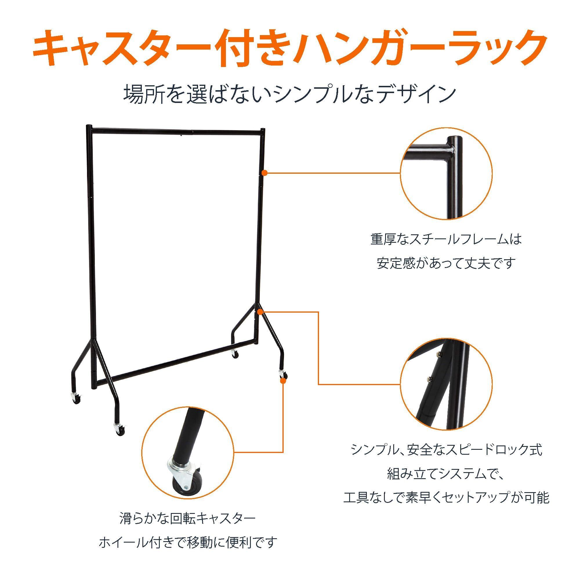 ベーシック ハンガーラック 洋服ラック 頑丈 キャスター付き 長さ1.21×高さ1.52m ブラック