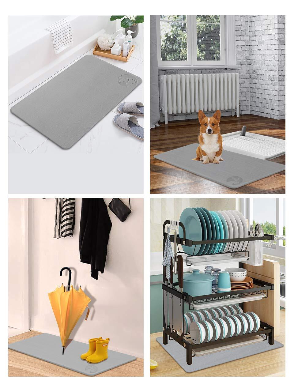 チチロバ(TITIROBA) バスマット 珪藻土バスマット ハード型 風呂マット 足ふきマット 速乾 調湿 吸水性 珪藻土 キッチンマット 洗濯不要 滑り止め 浴室 洗面所 グレー DS-01-G | Lulu