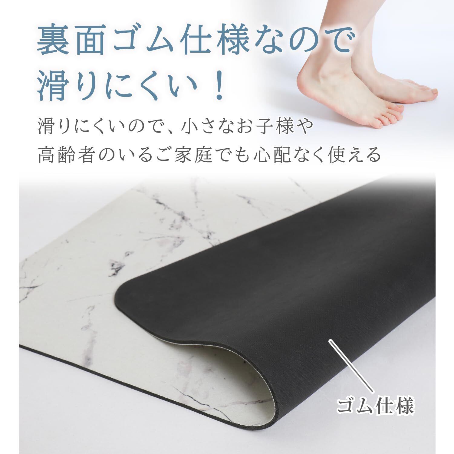 【裏面滑り止め加工でズレにくい・玄関やキッチンでも】:裏面は滑り止め加工が施されているのでズレにくく、玄関やキッチンでも使える。