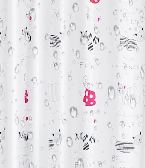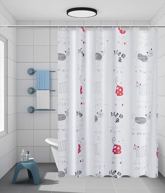 シャワーカーテン バスカーテン 防水防カビ加工 風呂 おしゃれ 目隠し 間仕切り 保温 取り付け簡単 (ネコ柄, 横120cm×縦180cm)