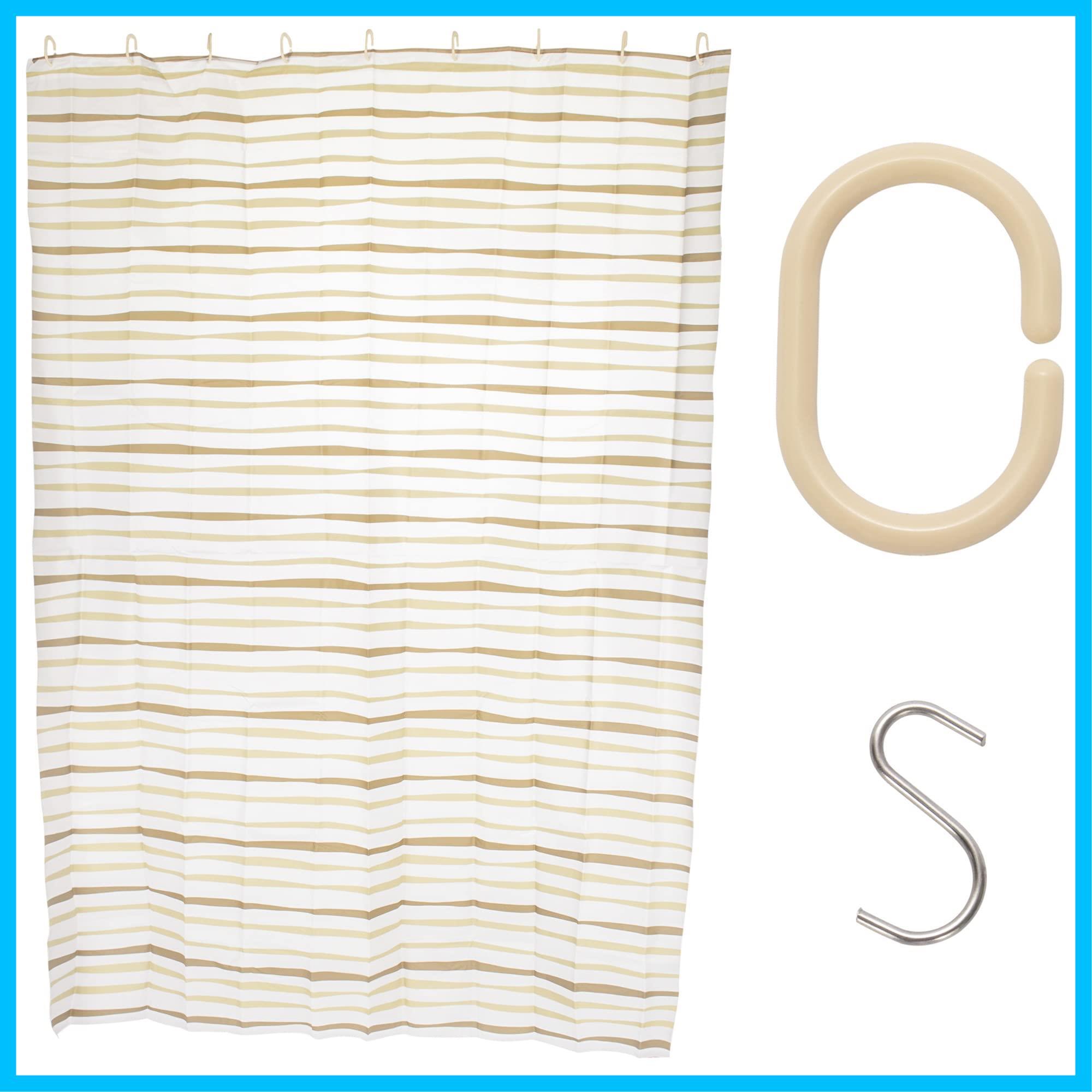 ストリックスデザイン シャワーカーテン フック付き Sカン Cカン 約135×180cm ボーダー 防水 パーテーション 間仕切り カーテン ユニットバス お風呂 浴室 QB-157D