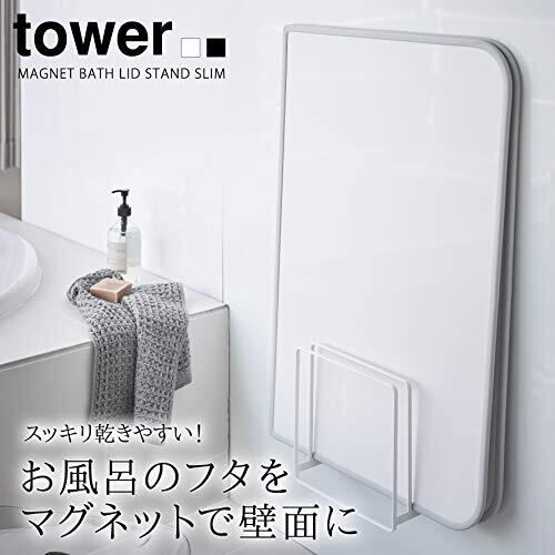 山崎実業(Yamazaki) 乾きやすいマグネット風呂蓋スタンド タワー ホワイト 約W26.5XD10.3XH25cm タワー 浮かせて収納 シャッタータイプも収納可 5085