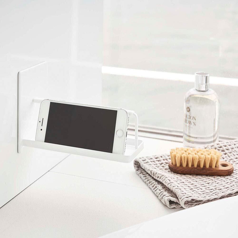 山崎実業(Yamazaki) マグネットバスルーム スマートフォンスタンド ホワイト 約W8XD17XH12cm タワー スマホスタンド 滑り止め付き 4972