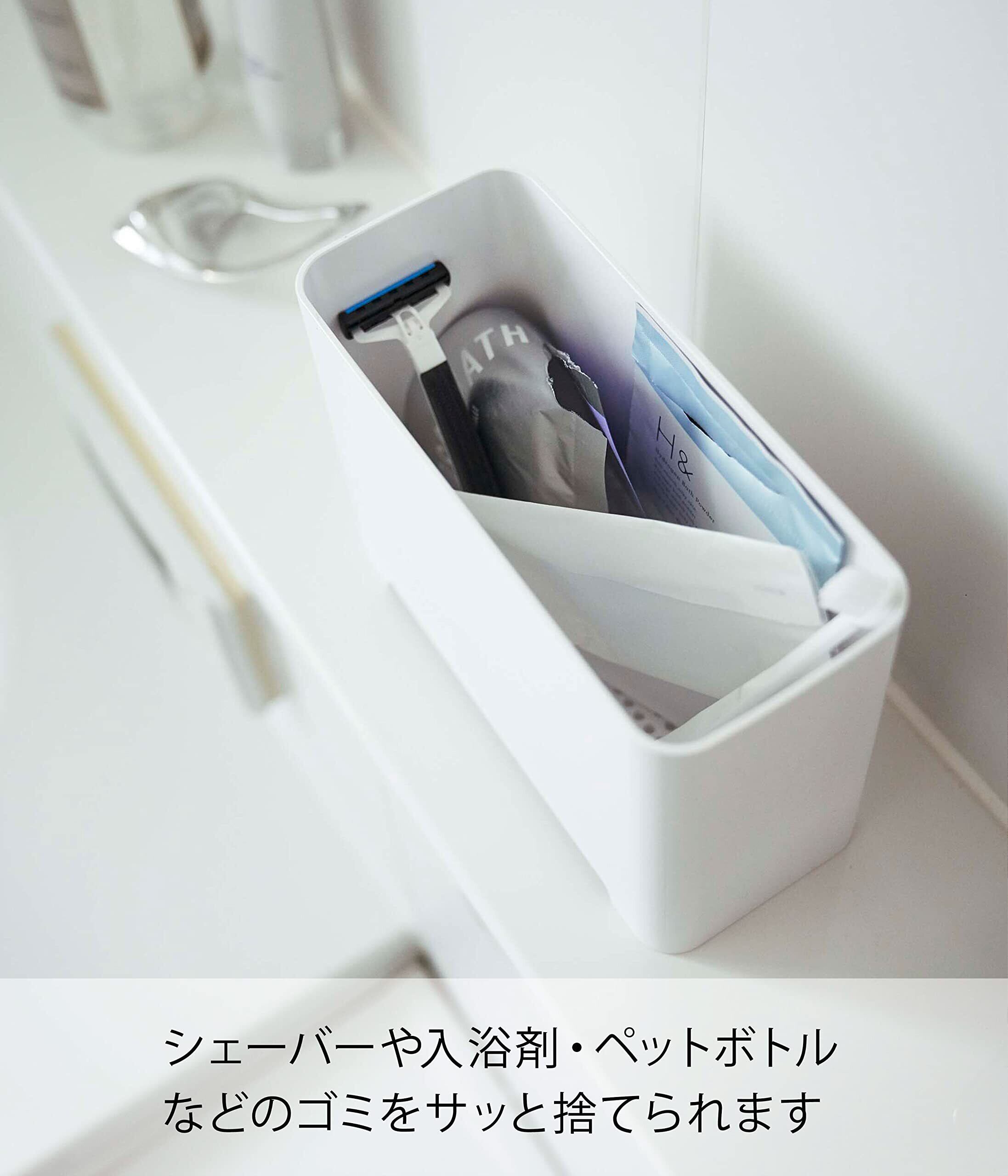 山崎実業(Yamazaki) マグネット バスルーム ゴミ箱 ホワイト 約W20×D8.7×H15㎝ タワー マグネット付き 排水穴あり ダストボックス 5540