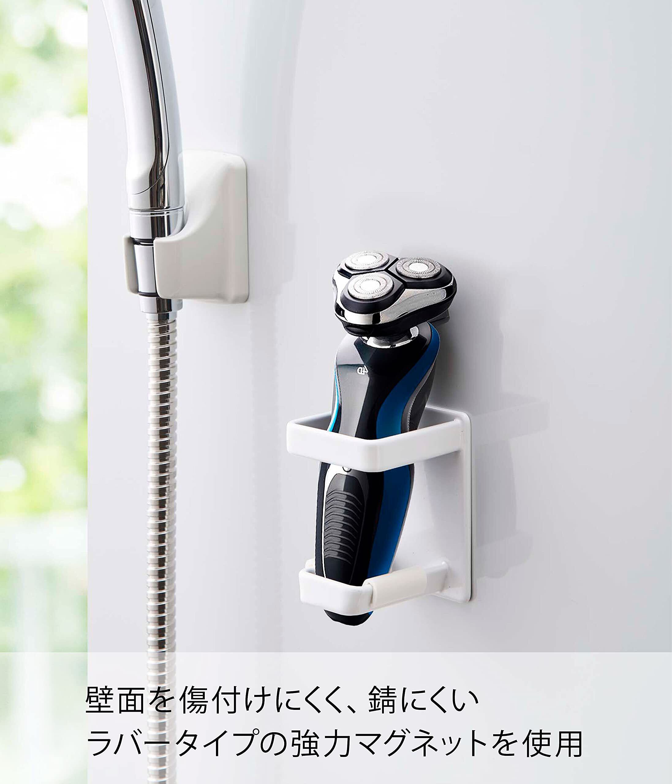 山崎実業(Yamazaki) マグネットバスルーム電動シェーバーホルダー ホワイト 約W6XD6XH8cm タワー 髭剃り収納 バリカン収納 4863