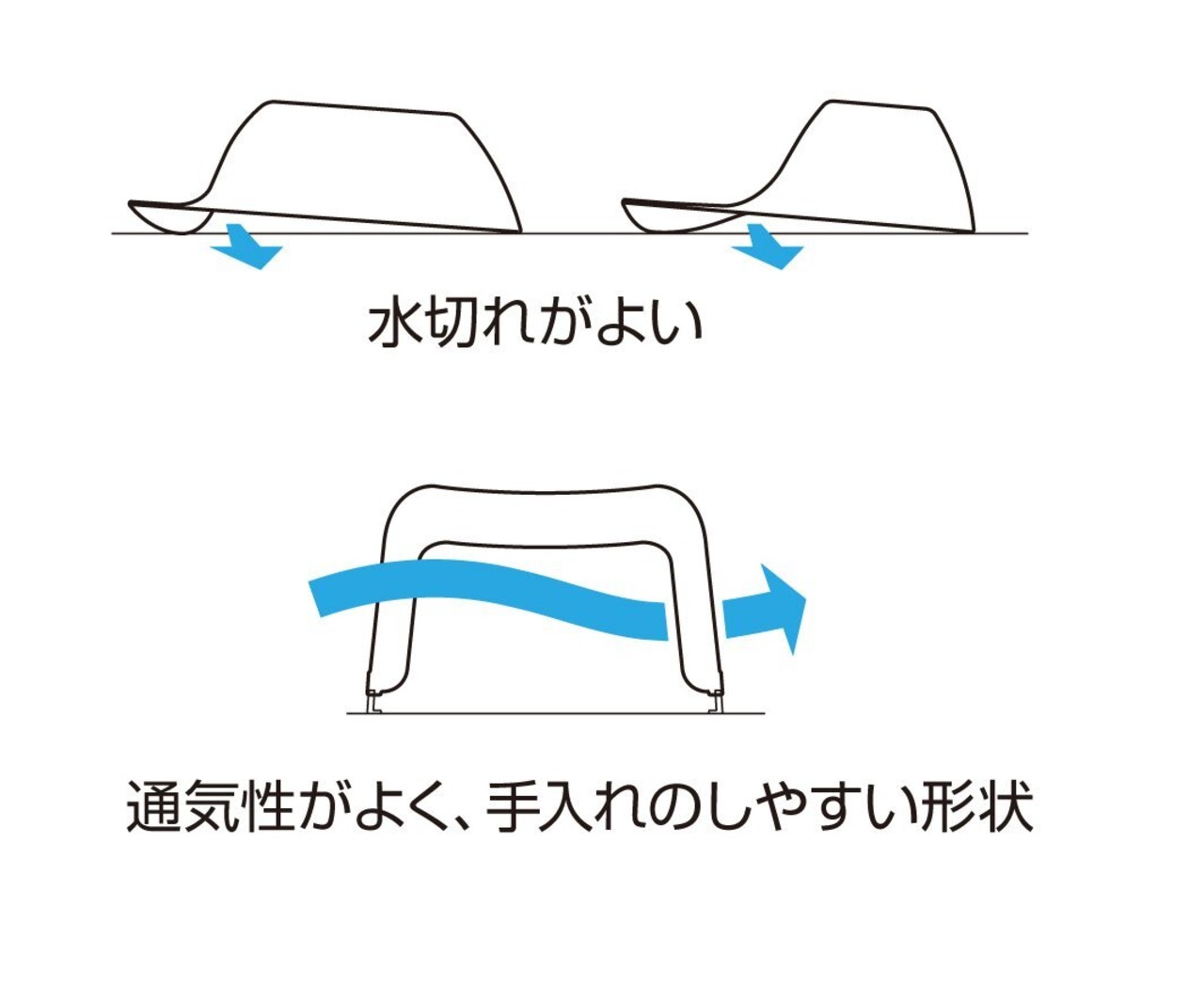 ●水滴がたまりにくいけいじょうで清潔に乾燥させることが可能