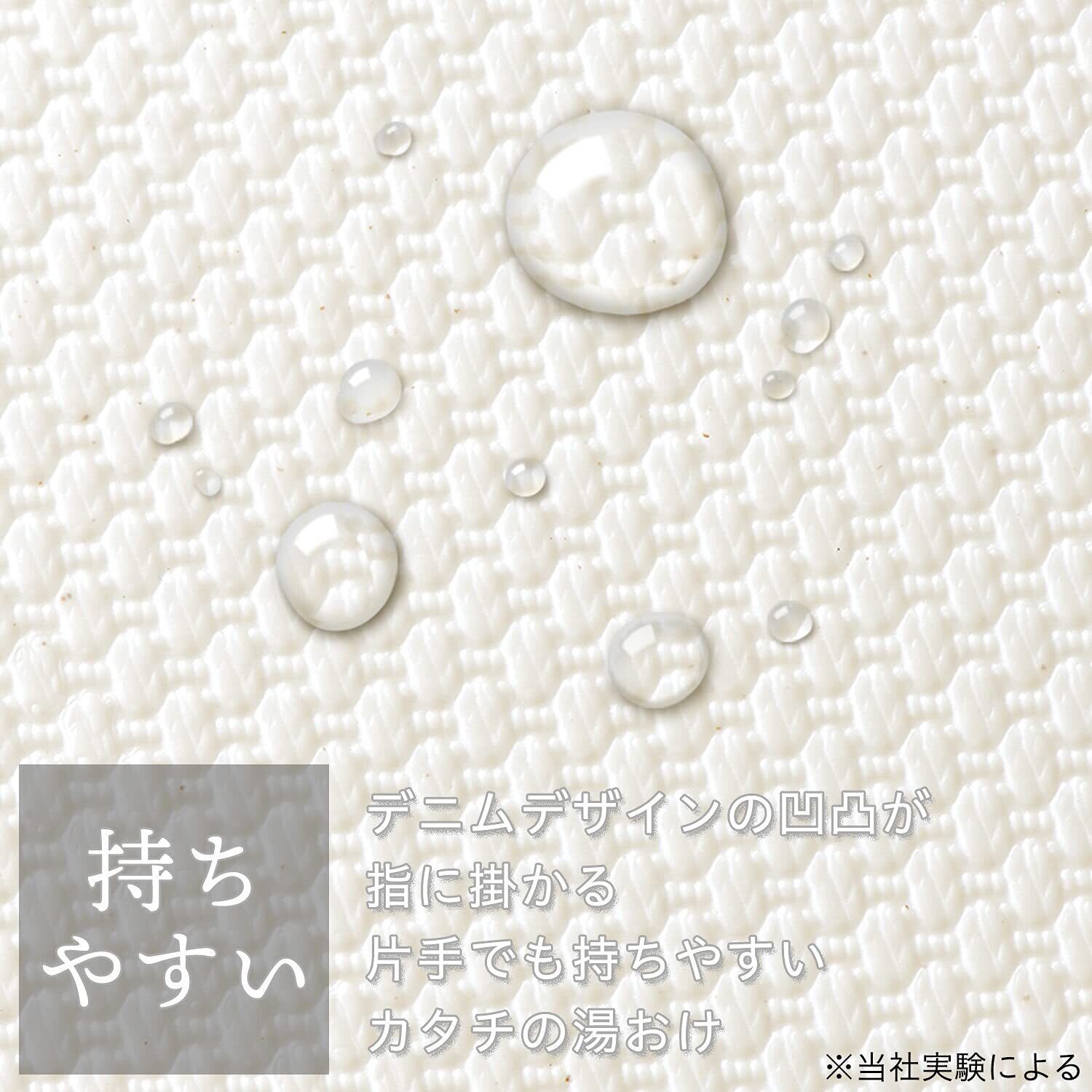女性の片手でもしっかり持て、お湯をすくいやすい形状です