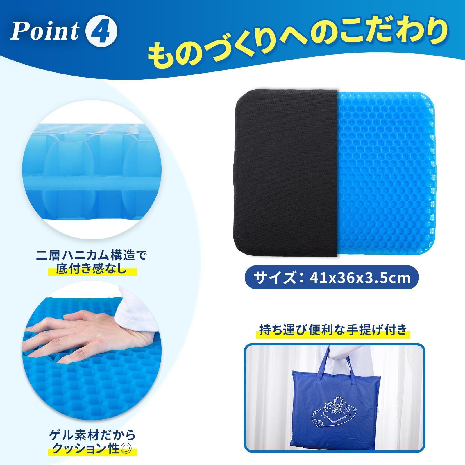 【進化2重設計・クッション性】第二世代ゲルクッションは非常に丈夫な作りで柔軟性と耐久性が良い。約500個ハニカムと二重設計で良い姿勢を保てる。両面使用可能。