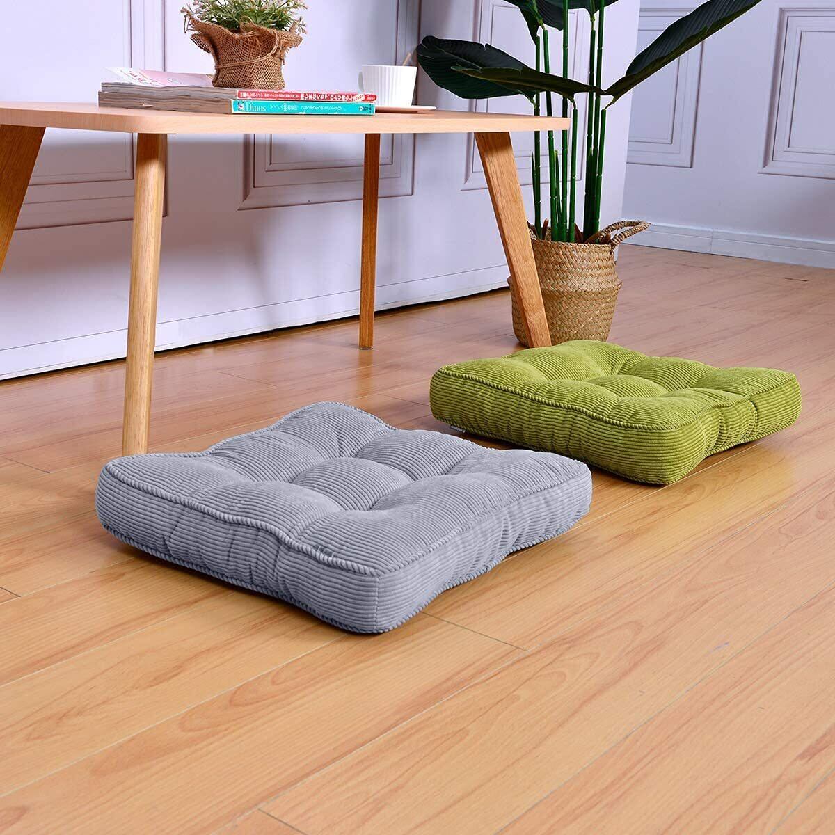Baibu Home 座布団 クッション 厚め7cm コーデュロイ生地 ざぶとん 無地 フロアクッション グレー クッション 座り心地いい 40cm角