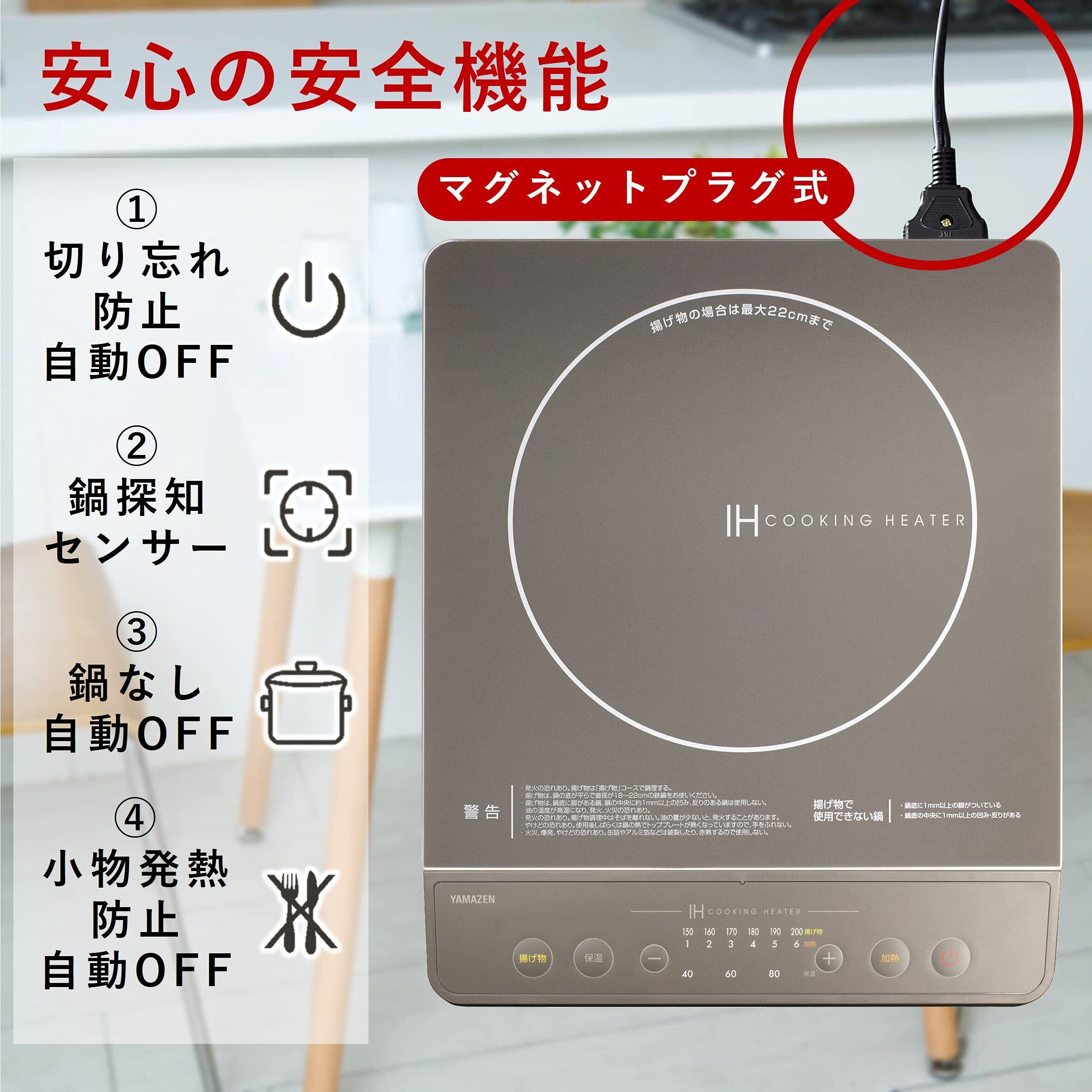 [山善] IHコンロ IHクッキングヒーター 卓上 小型 一人暮らし 二人暮らし 1400W 高火力 火力調整6段階 保温 IH調理器 マグネットプラグ仕様 ブラウン YEN-S140(BR)