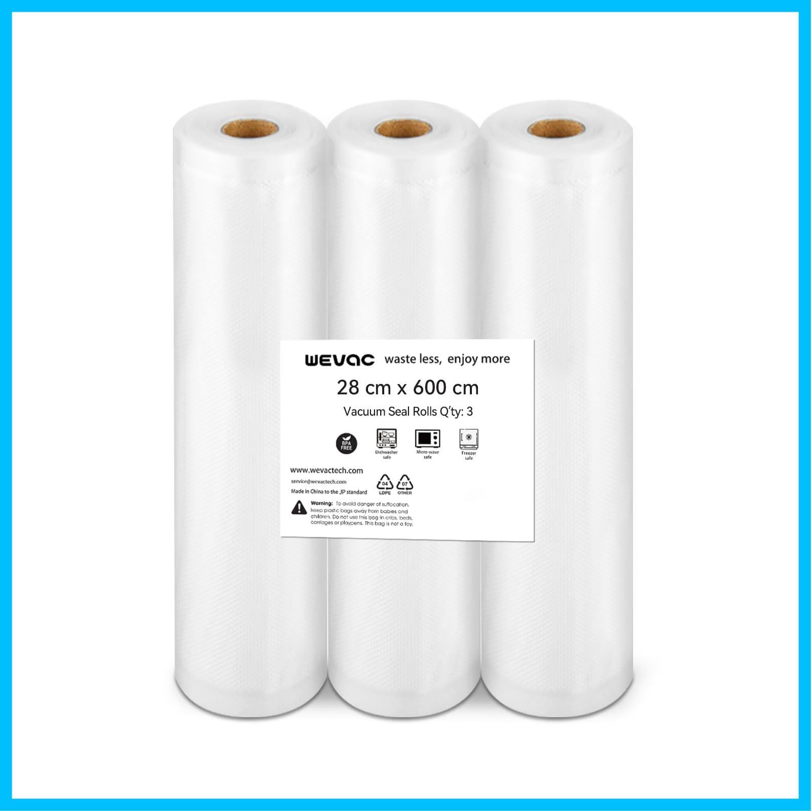 Wevac 真空パック袋 真空パックロール 約28cm×600cm 3本いり 真空ぱっくん 替えロール 真空袋 自由にカット エンボス加工 脱気しやい 密閉性 野菜 お米 お魚 犬のフード 鮮度長持ち 食品保存 PE+PA安全素材 低温調理 真空パック機 真空シーラー 用 業務用 家庭用 | Lulu