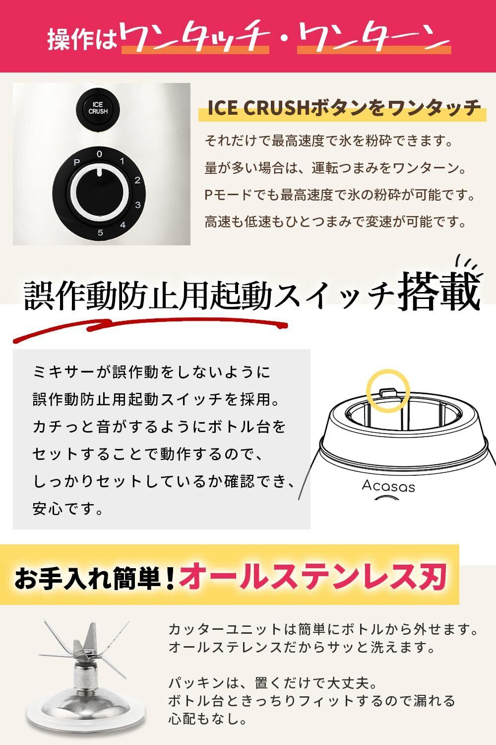 Acasasプロ推しのスムージーが作れるジューサー 5段階変速ミキサー 氷も砕ける500Wハイパワー 1500ml大容量ガラスボトル (A-1200)