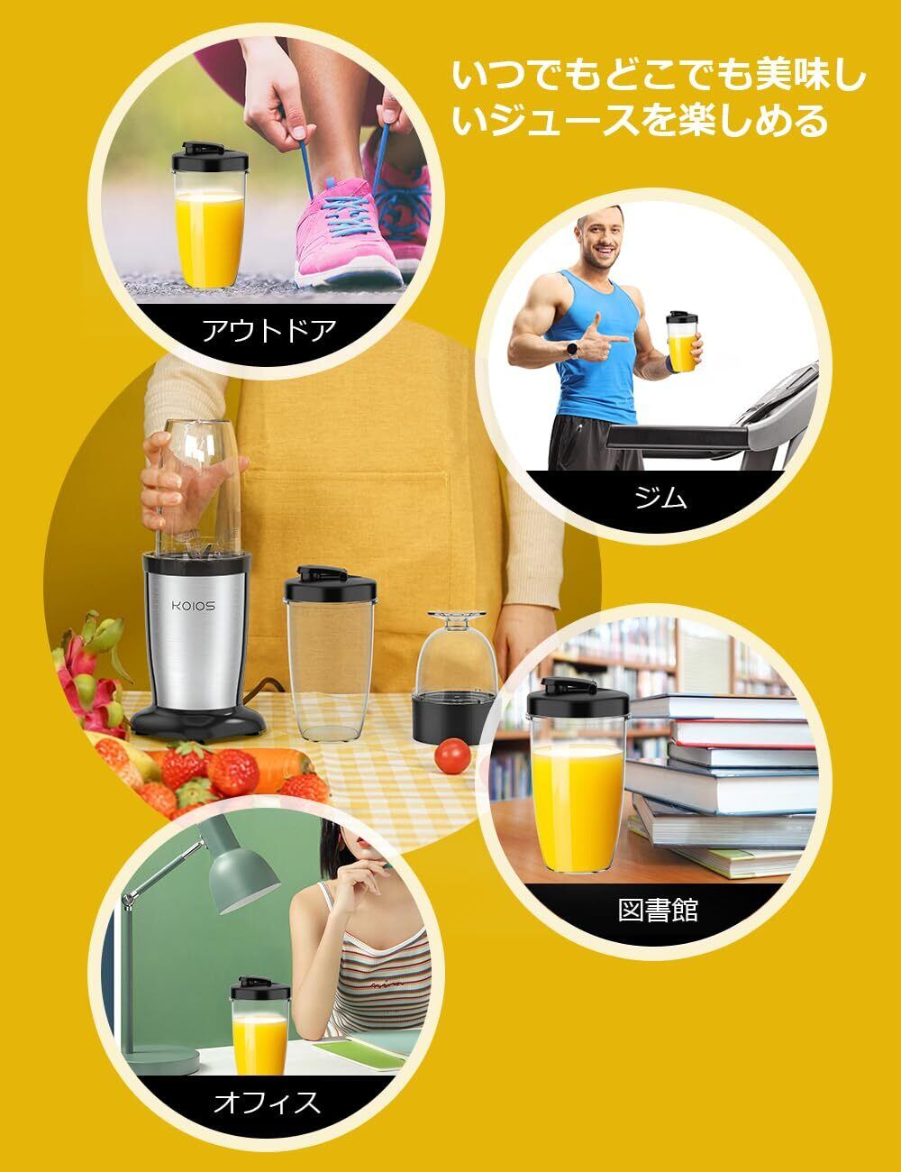 【手軽に楽しくミキサー】究極のパーソナルミキサー、スムージー、シェイク、ジュースを外出先で手軽に作る方法を探していましたか? KOIOS一台多役ミキサーが答えです!簡単なワンプッシュだけで、わずか30秒で手早くお気に入りの飲み物を作ることができます。作ったジューサーを直接飲み、ふたが付いているから、携帯用カップを外してどこでもお楽しみください。