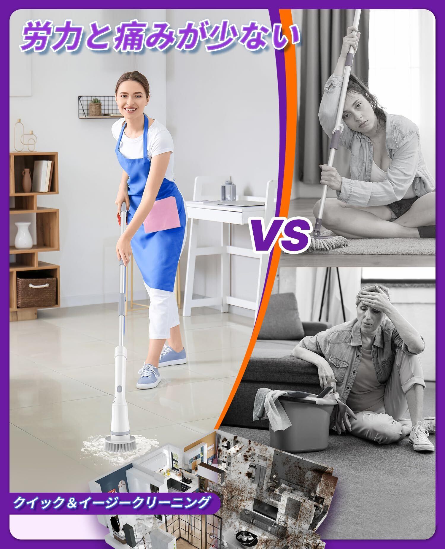バスポリッシャー 電動お掃除ブラシ 6つ取り替えブラシ付き お風呂掃除 ターボプロ ブラシ USB C充電式 長さ伸縮可能 手持ち式 3000mAh大容量 120分間連続使用 風呂 浴室 浴槽磨き トイレ掃除 床 窓 壁 玄関 車の掃除 年末掃除 PSE認証済み 日本語説明書付属